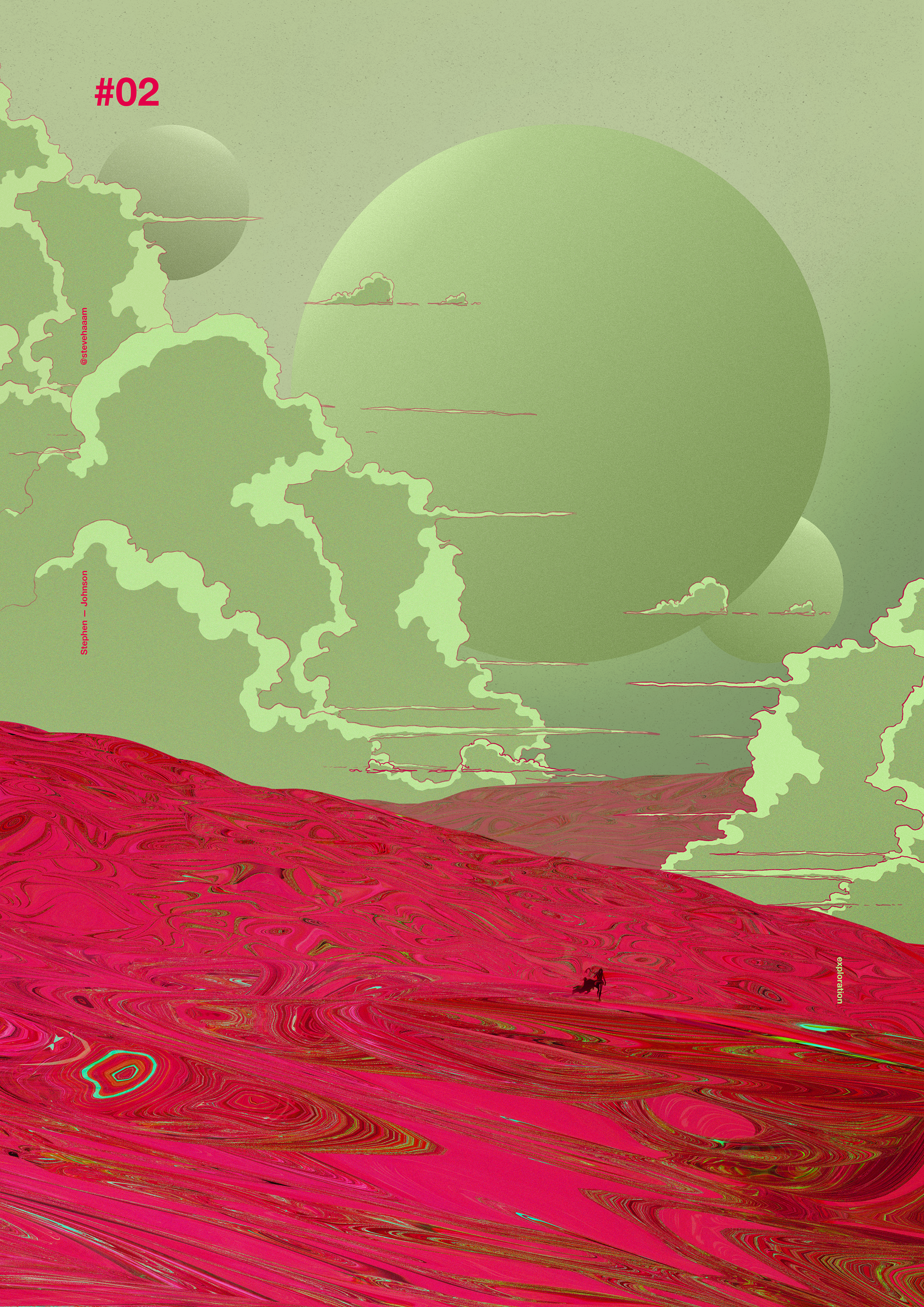 Procedurally generated environmental assets in combination with hand drawn media and digital colour studies.